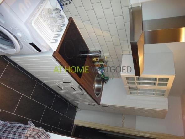 BG: entree, hal, knusse maar nette en fris betegelde badkamer. De badkamer is voorzien van een douche, wastafel en toilet. De mooie keuken is uitgerust met een koelkast/vriezer, kookplaat, afzuigkap, wasmachine en geeft toegang tot de riante tuin gelegen aan de achterzijde.