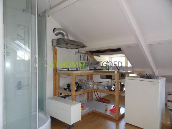 Derde verdieping: ruime lichte studio, met open keuken en luxe douchecabine. De keuken is voorzien van kookplaat, afzuigkap, koelkast en magnetron. Separaat toilet.