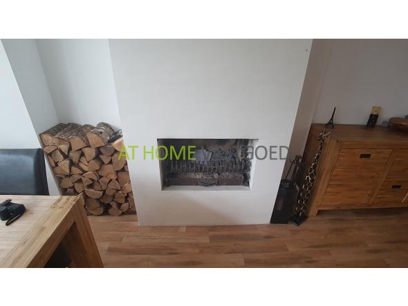 Riante woonkamer met erker, open haard en prachtige luxe moderne open keuken voorzien van alle benodigde Bosch apparatuur zoals; gaskookplaat, RVS-afzuigkap, koffiemachine, combi magentron, stoomoven, koelkast, vriezer en vaatwasser. De keuken geeft middels openslaande deuren toegang tot de riante tuin met berging en loungegedeelte met haard.