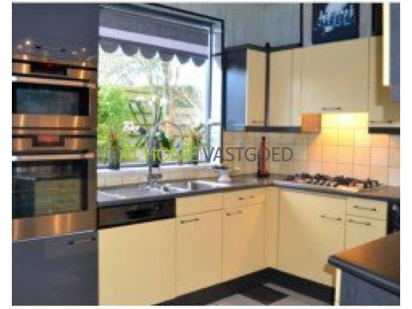 - Keuken met moderne inbouw apparatuur zoals 5 pits gaskookplaat, afzuigkap, elektrische oven, combi magnetron oven, vaatwasser en Amerikaanse koel/vrieskast. De keuken is voorzien van een plavuizen vloer, een voorraadkast en een wasruimte met aansluiting voor wasmachine en droger.