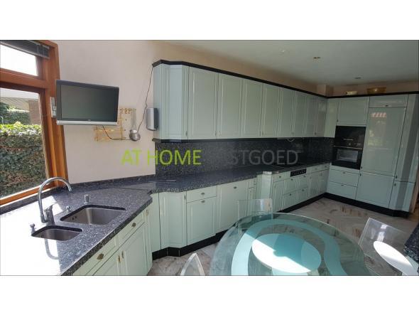 Begane grond: entree, grote hal met het eerste toilet en toegang tot de kelder, en trap naar de verdiepingen. Royale woonkamer met open haard en schuifpui naar de heerlijke tuin. De afzonderlijke keuken is van alle gemakken voorzien zoals; een keramische kookplaat, afzuigkap, koelkast, vriezer, oven, magnetron en vaatwasser. Via de keuken heeft u tevens toegang tot de tuin.